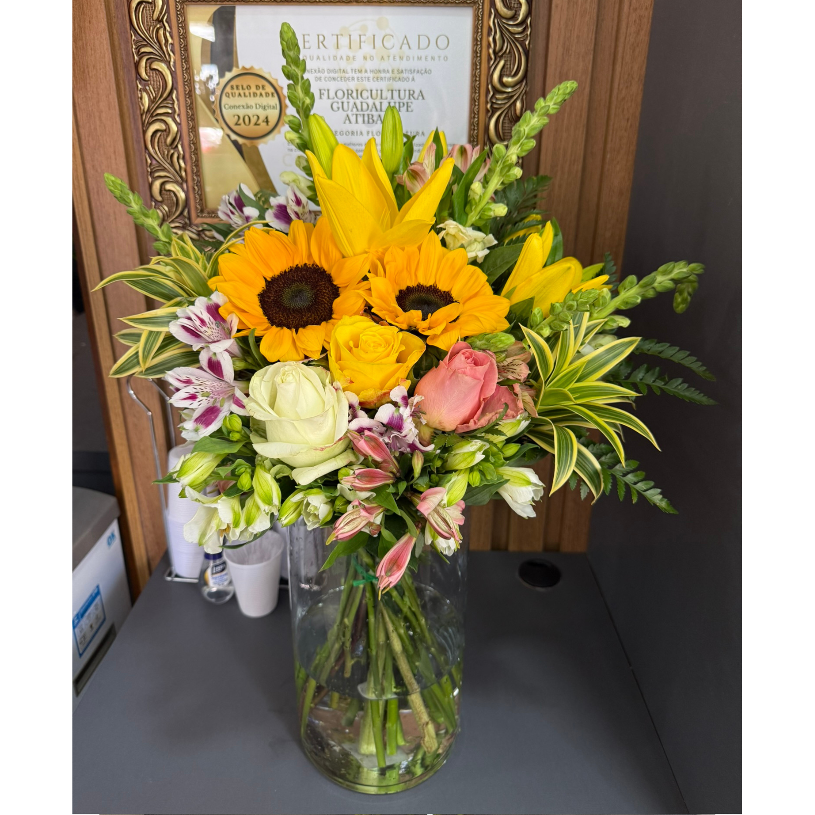 Arranjo de flores com mistura de flores nobres e campestres de tamanho G